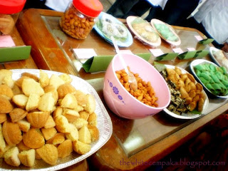 ada satay, nasi impit, kuah kacang, kuih ketayap, kuih cara manis, kuih siput, bahulu, karipap, kuih batik, nasi lemak..